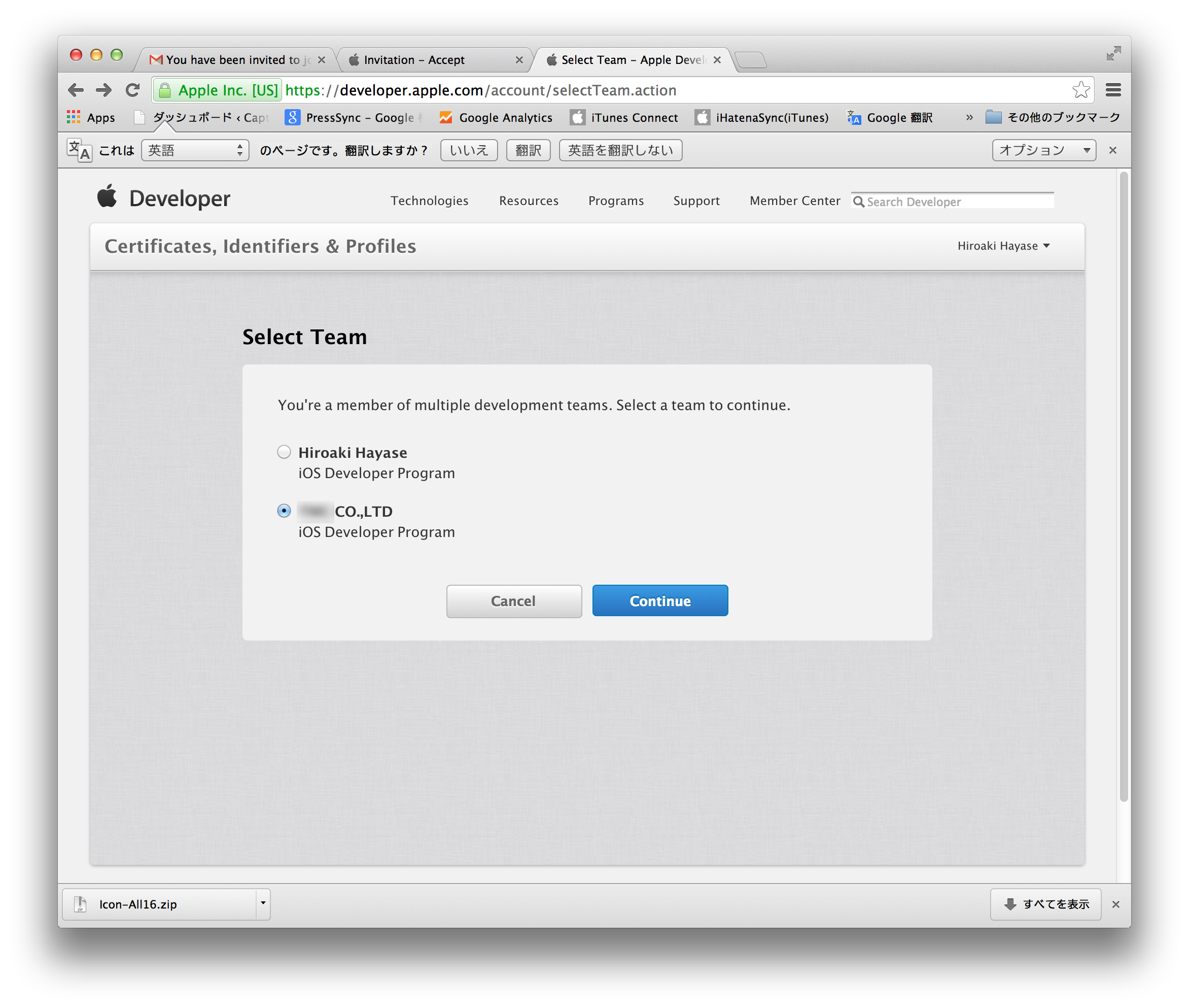 iOS Dev Centerにアクセスすると、チームの選択を促されるようになります。単独開発だとこの選択肢は無いのですが。