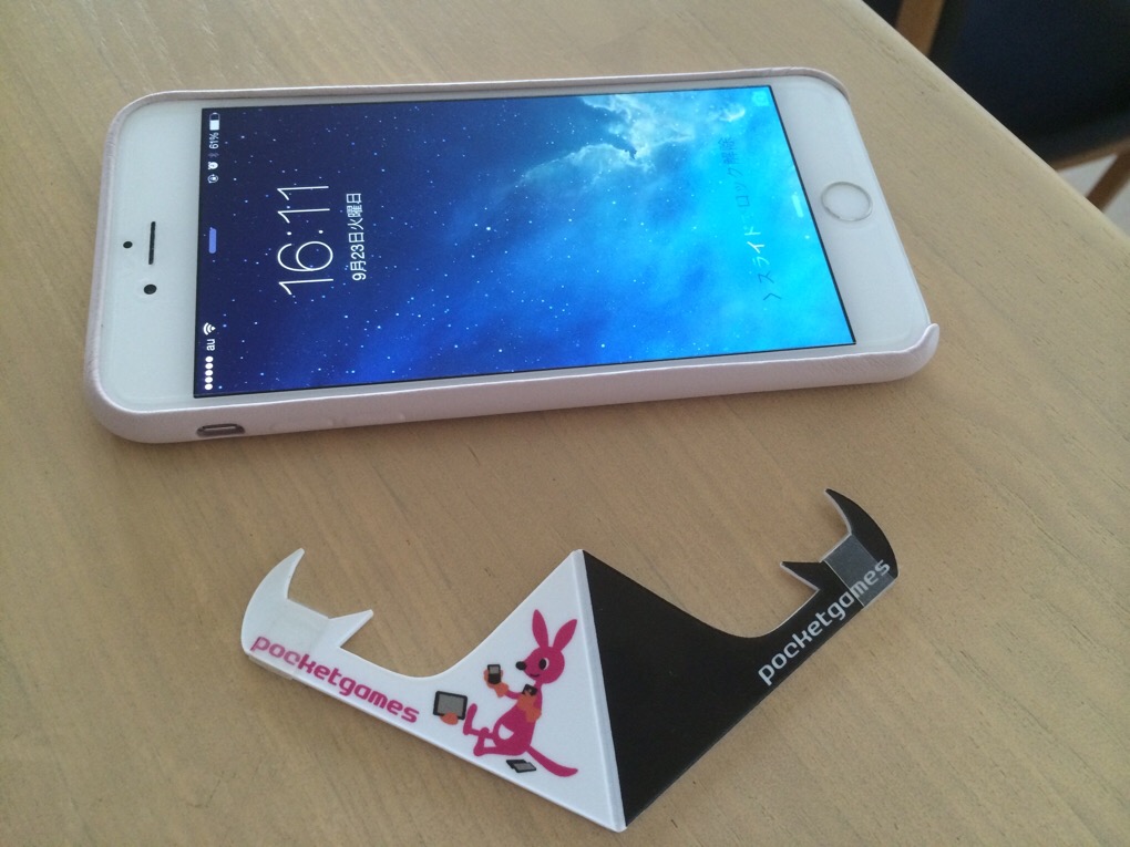 利用時は真ん中を折り曲げて三角形を作りスタンドにするというシンプル構造です。折り曲げる角度によって微妙に画面の角度も調整可能です。