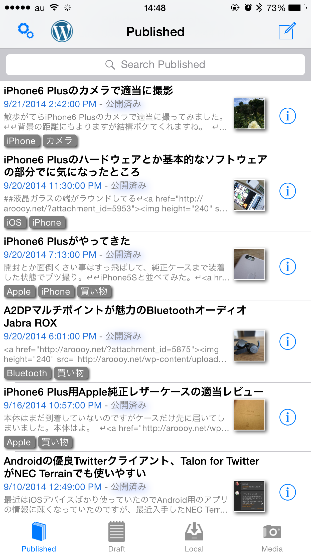 PressSync(Pro,Free)の次期リリースバージョンについて PressSync X Facebook はてブ LINE Pinterest コピー 2014.09.21 目次 iPhone6解像度対応その他諸々の不具合修正既知の問題 iPhone6解像度対応 iPhone6、iPhone6 Plusそれぞれの解像度に最適化します。 その他諸々の不具合修正 iPhone6で動作させた時に発覚した諸々の不具合修正が次期リリースバージョンには含まれます。 既知の問題 iOS7以降、UITextViewという標準部品の挙動が怪しい為、PressSyncにはiOS6以降の部品を使用するオプションを設けていました。 このオプションはiOS8以降では効かなくなっているもようです。 以上 via PressSync