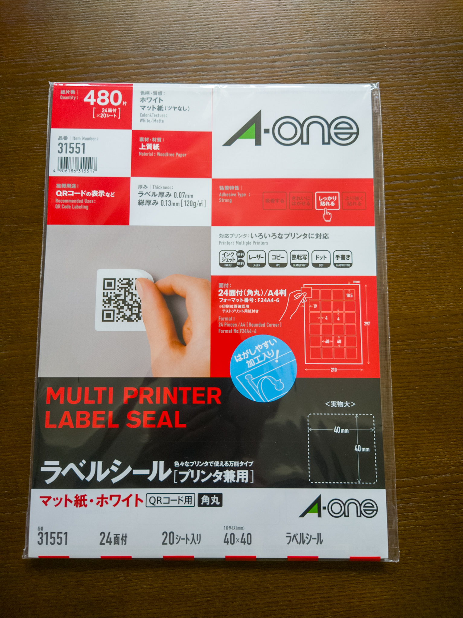 エーワン ラベルシール 24面 20シート 31551